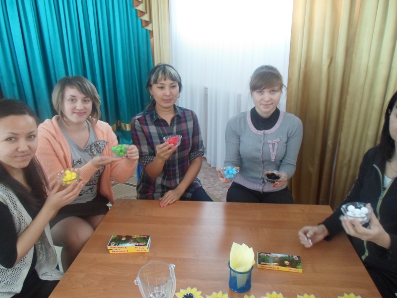 Педагог: Я вам предлагаю познакомиться с некоторыми нетрадиционными техниками в изобразительной деятельности, которые предлагаются детям дошкольного возраста. С вашим участием, я проведу интегрированное занятие которое будет включать в себя несколько дисциплин: рисование, аппликацию, лепку и ручной труд. В занятия включены ряд коррекционных приемов, игр и упражнений, направленных на развитие эмоционально-волевой сферы, развитие мелкой моторики, тактильных ощущений.