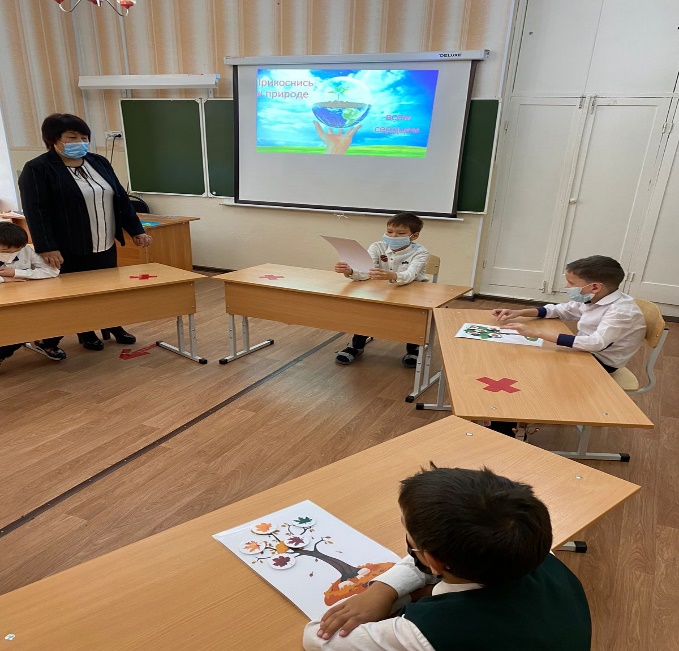 Посмотрите как вы красиво отразили в своих рисунках природу (работа с выставкой рисунков).